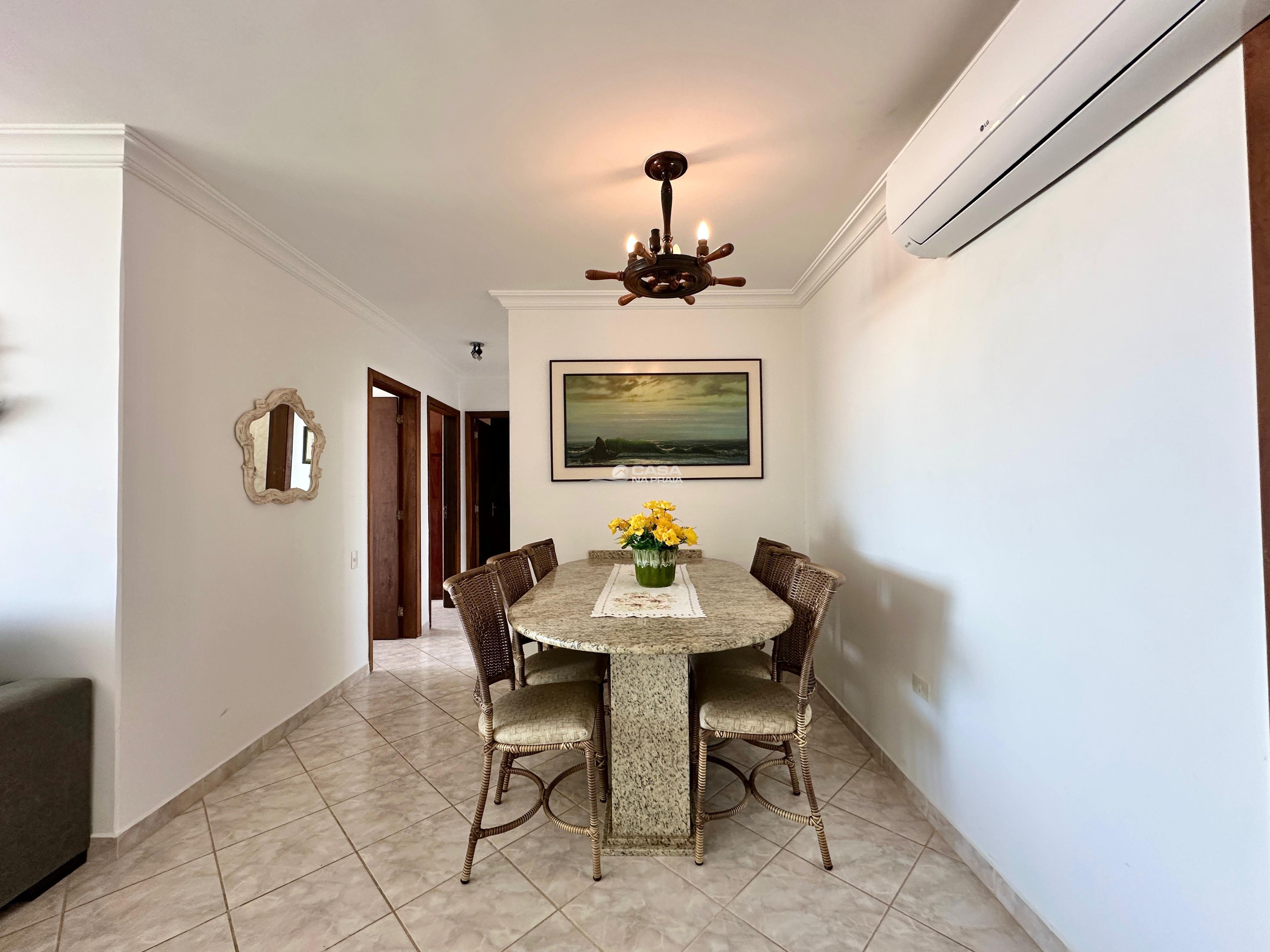 Sala de estar e jantar integradas, com ar-condicionado