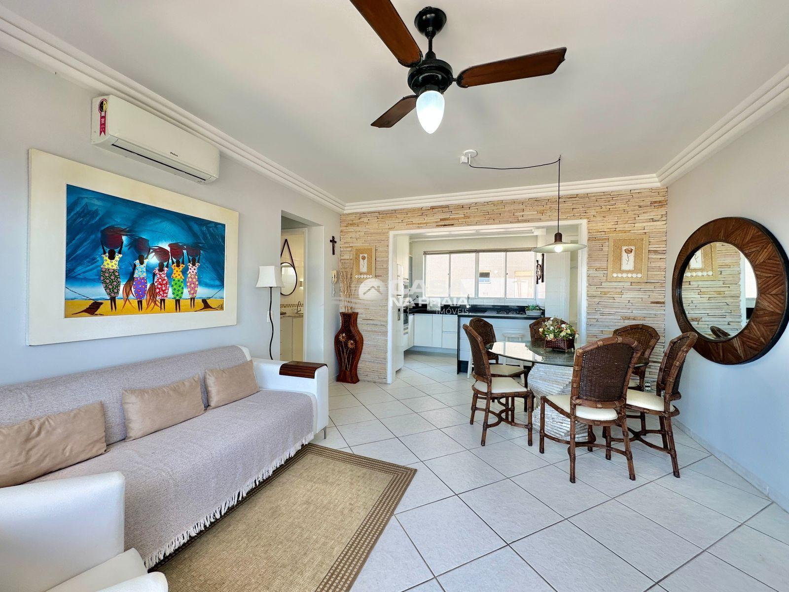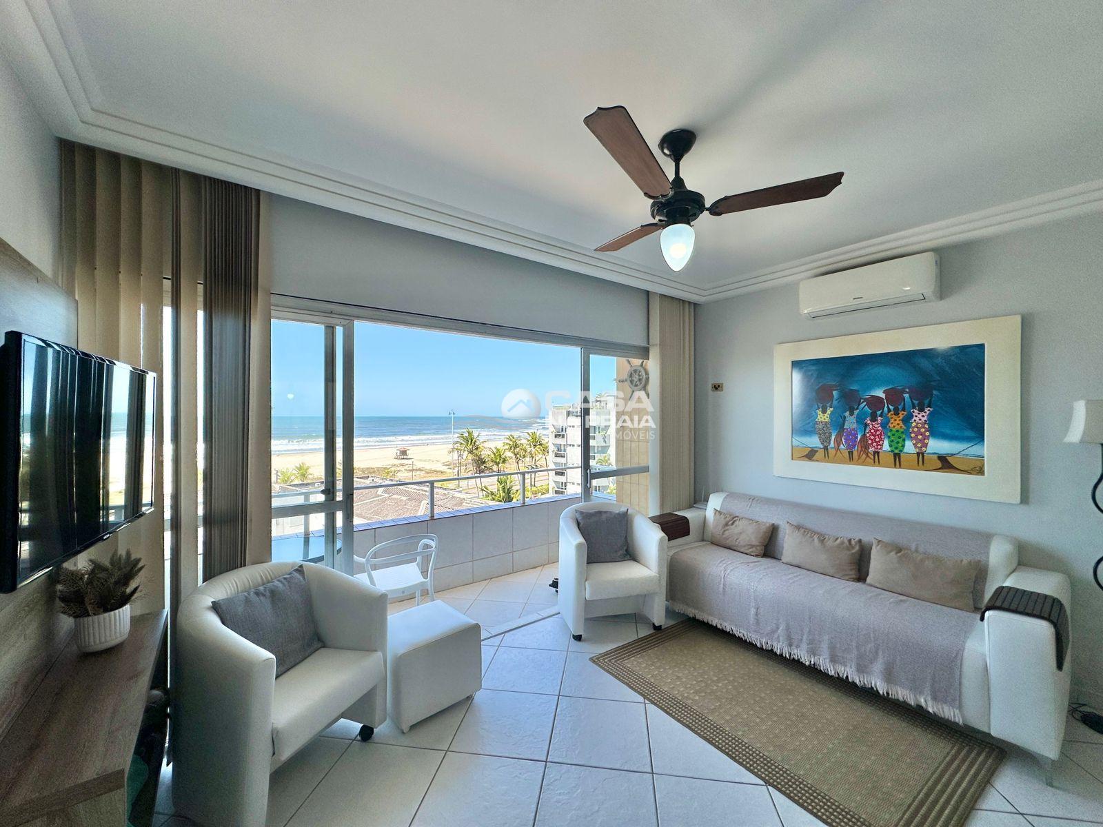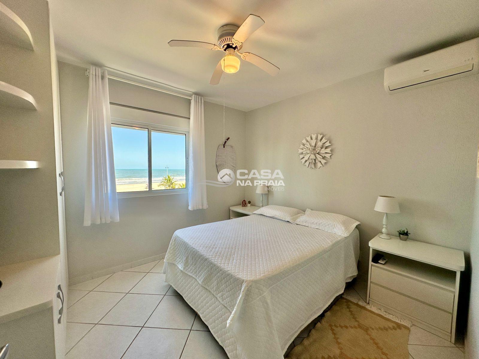 Possui 03 quartos (01 suíte), sala de estar e jantar integradas, sacada com vista para o mar, cozinha equipada, área de serviço e banheiro social. Conta ainda com Wi-Fi e 02 vagas de garagem.