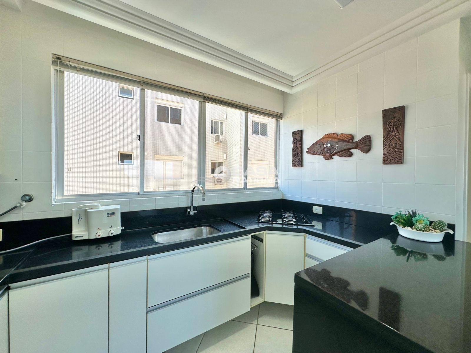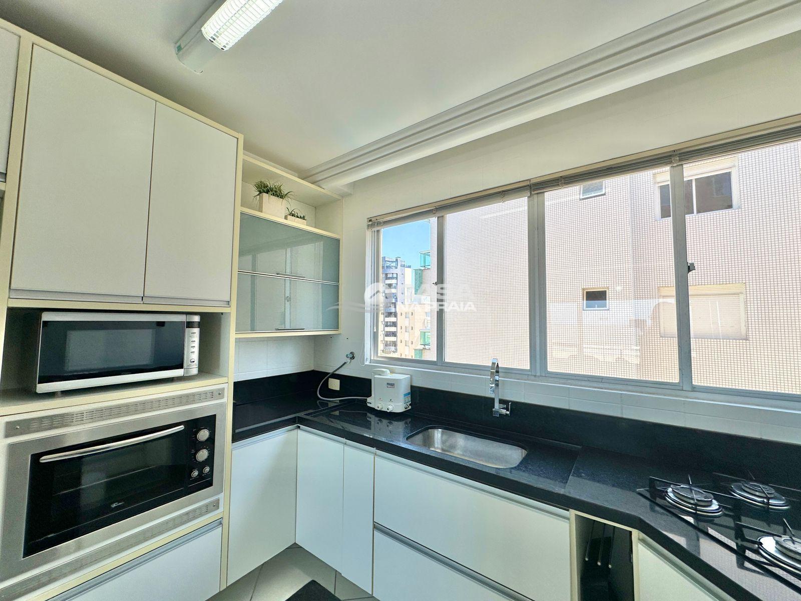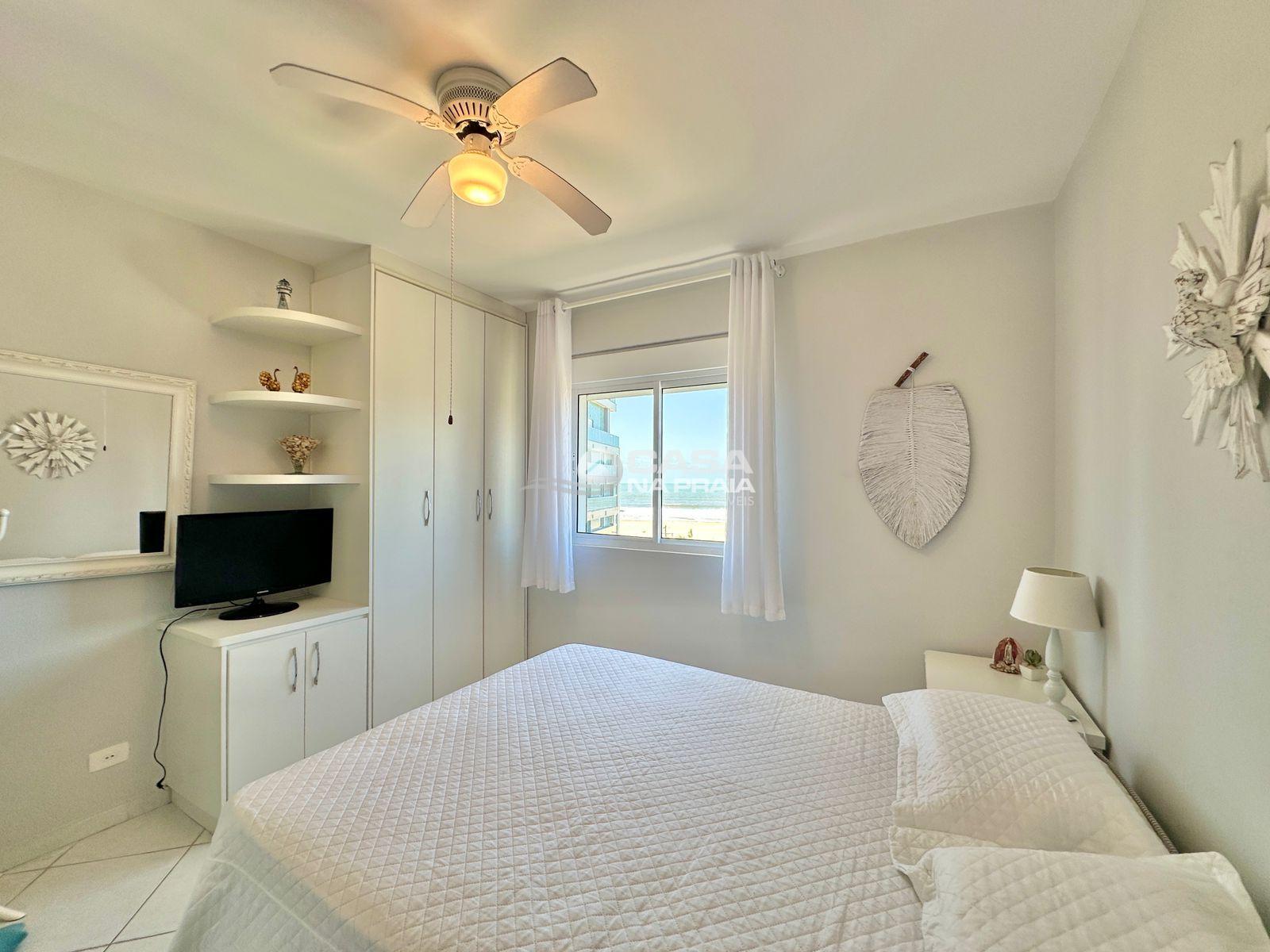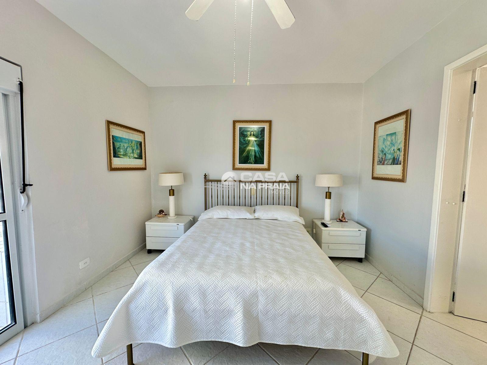 Possui 03 quartos (01 suíte), sala de estar e jantar integradas, sacada com vista para o mar, cozinha equipada, área de serviço e banheiro social. Conta ainda com Wi-Fi e 02 vagas de garagem.