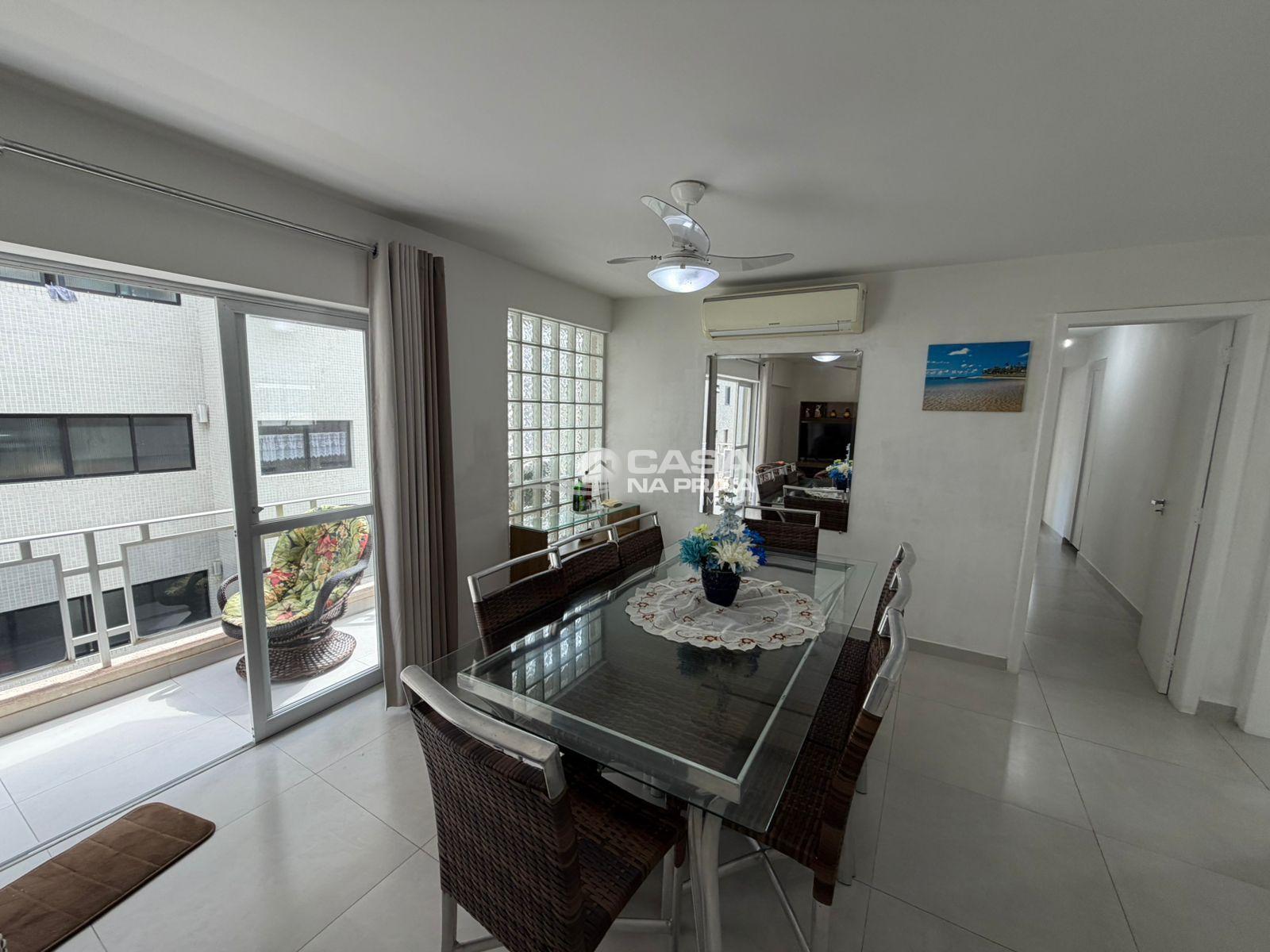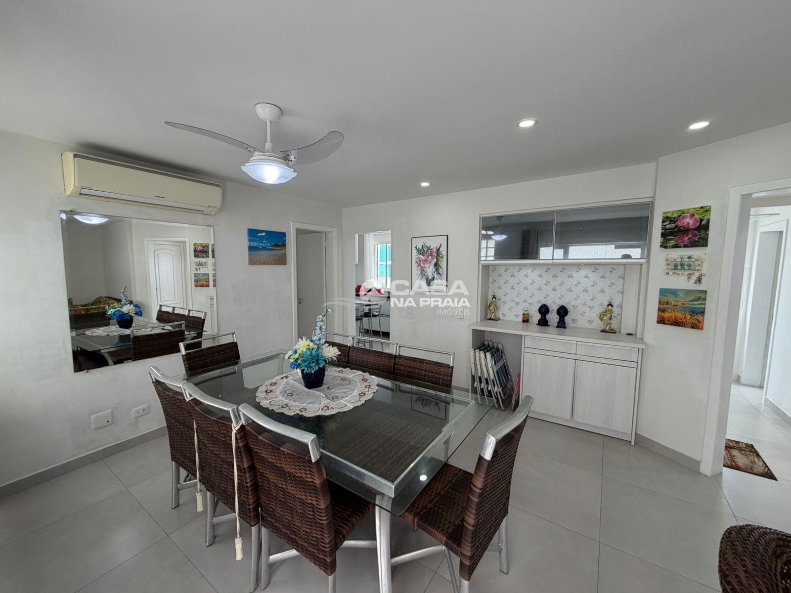 O imóvel conta com 03 dormitórios, sendo 01 suíte, sala de estar com sacada, cozinha, área de serviço e dependência de empregada. Possui ainda banheiro social e banheiro de serviço, oferecendo ótima funcionalidade para o dia a dia ou uso em temporada.