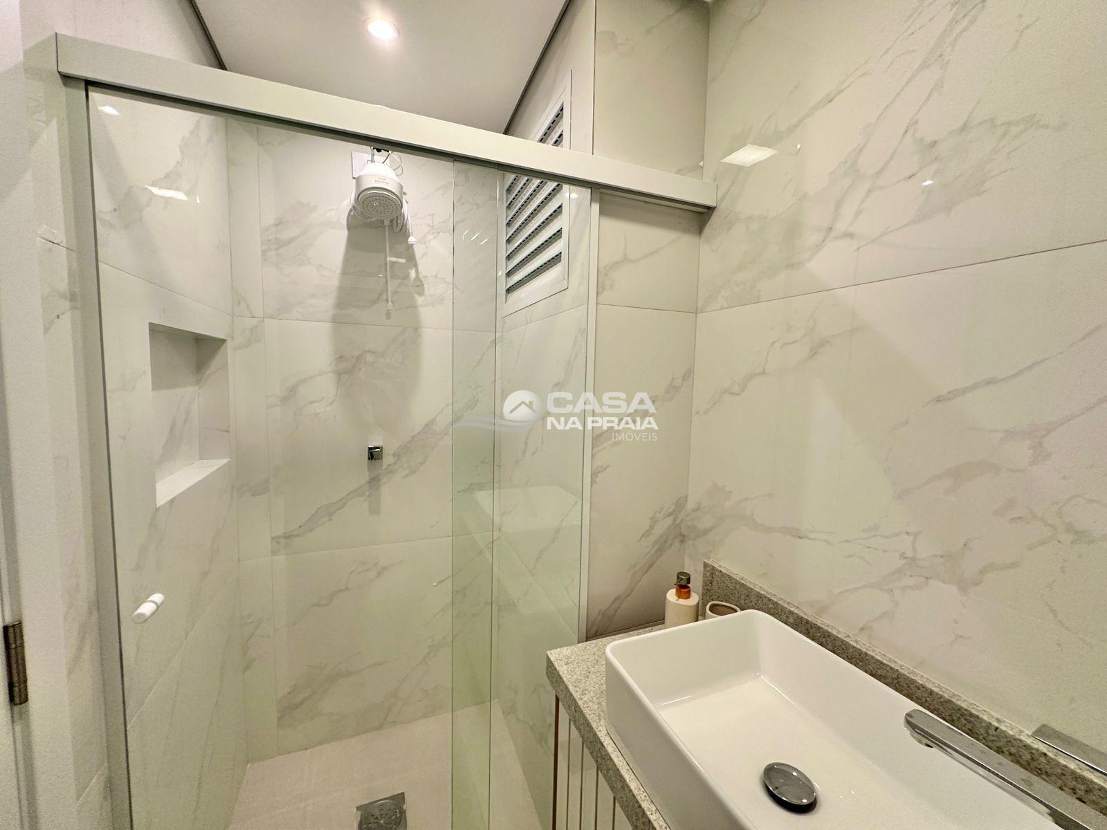 O condomínio oferece hall de entrada, elevador, interfone, zeladoria e chuveiro de praia, garantindo conforto e funcionalidade no dia a dia.