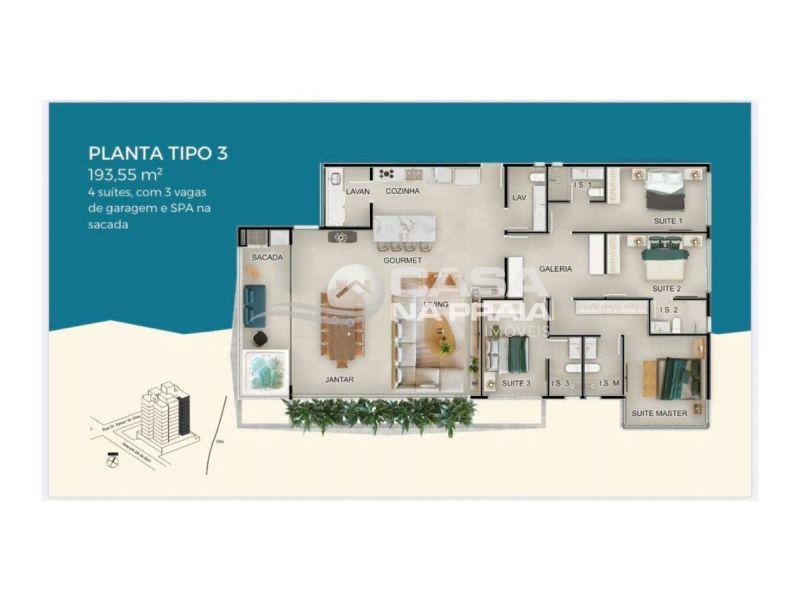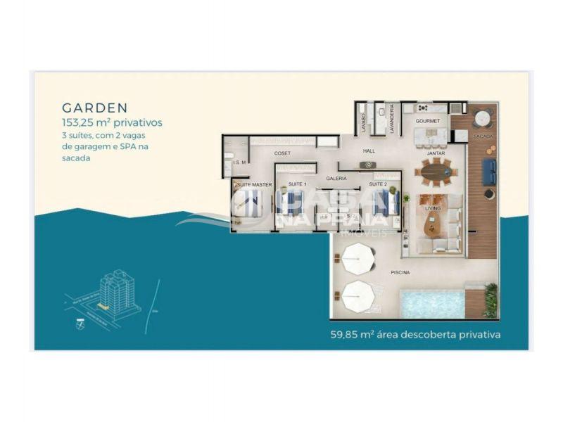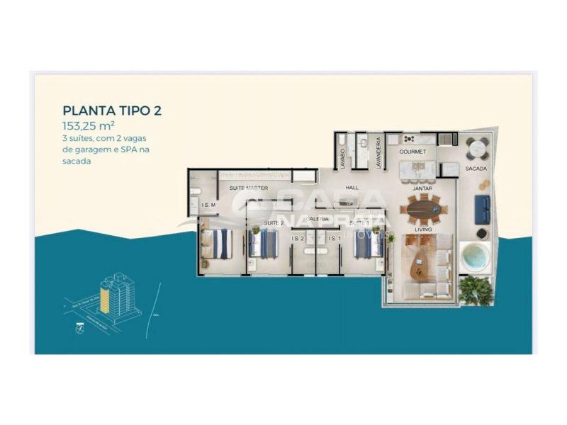 03 suítes (sendo 01 master com closet), 02 vagas de garagem, SPA na sacada e 59,85 m² de área descoberta. -
