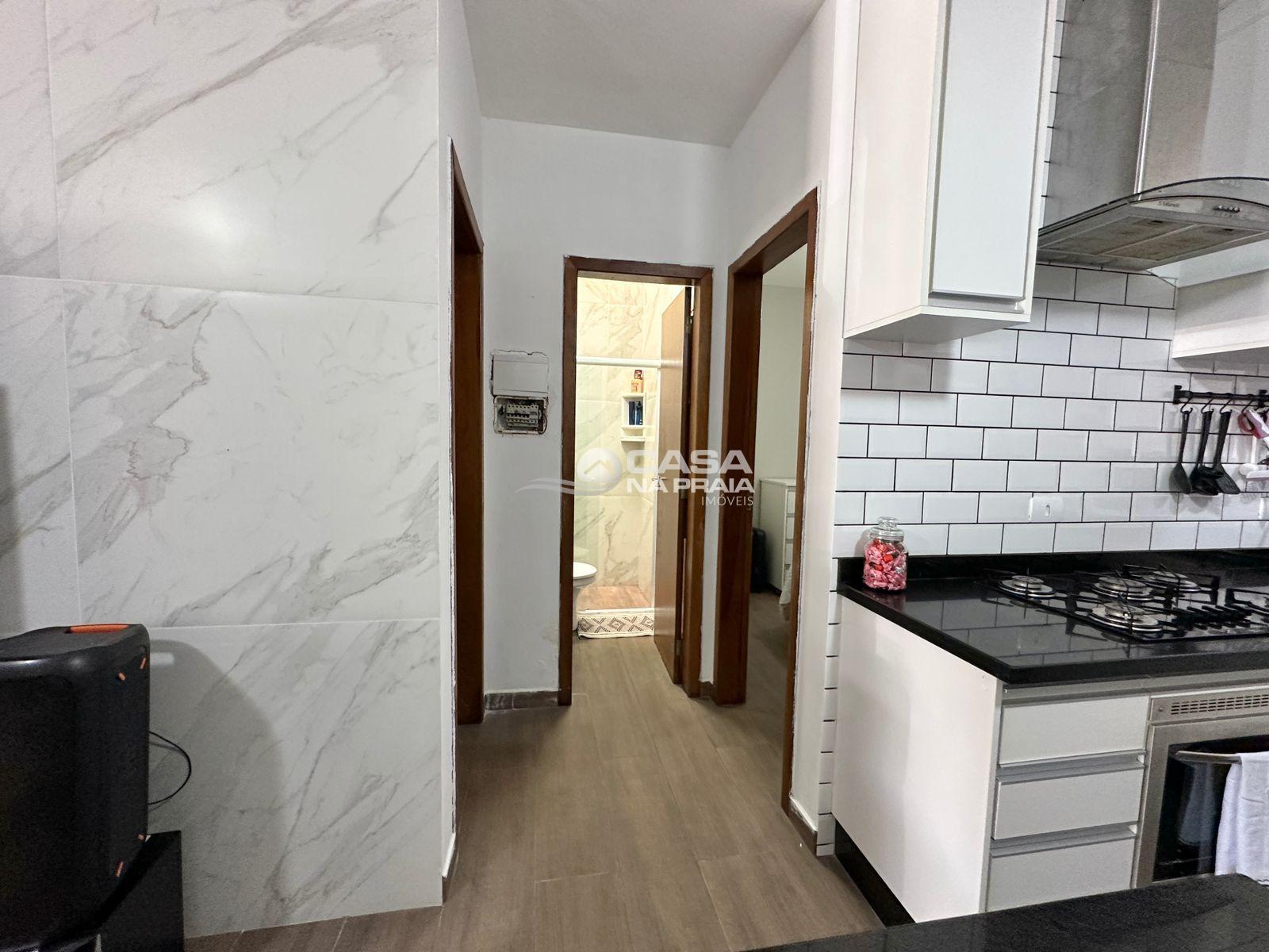 O imóvel conta com 02 quartos, banheiro social, sala de estar e jantar integradas à cozinha sob medida, área de serviço e espaço gourmet fechado. Possui ainda vaga de garagem coberta para 02 carros.